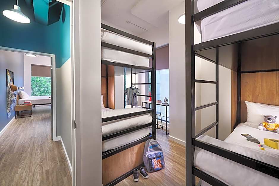 Room options span a mix of dormitory configurations and private choices, including Standard Room, Quadruple Room, Suite, Family Suite, and Executive. There are also dorm-style layouts such as 8-bed, 6-bed, and 4-bed arrangements, with some options offering a private bathroom, like Quadruple Room with Private Bathroom.